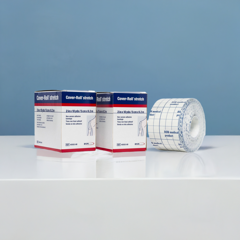 Cover-Roll Stretch is a versatile wide-area fixation dressing designed to secure and retain primary dressings on surgical or wound sites. Latex-free and easy to use, it provides light compression while accommodating joints and contoured body parts.